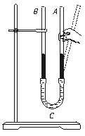 26.如图14—5所示的装置中,两端开口的U型管内注入一定量的水,将A管向右倾斜时,下面说法中正确的是