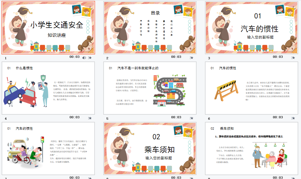 卡通小学生校园交通安全教育PPT教育培训ppt课件